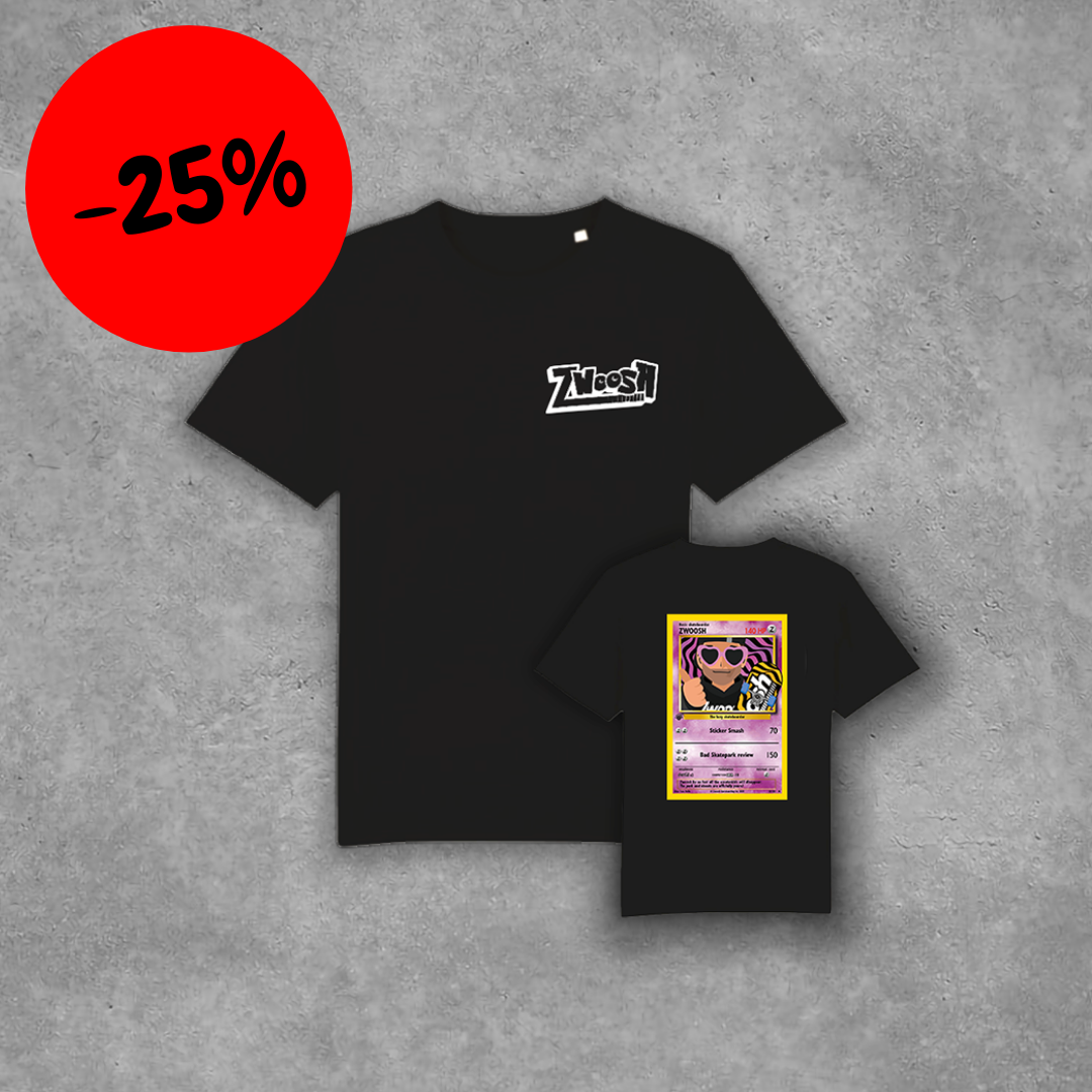 Zwoosh T-shirt met 'The lazy skater' Kaart op de rug.