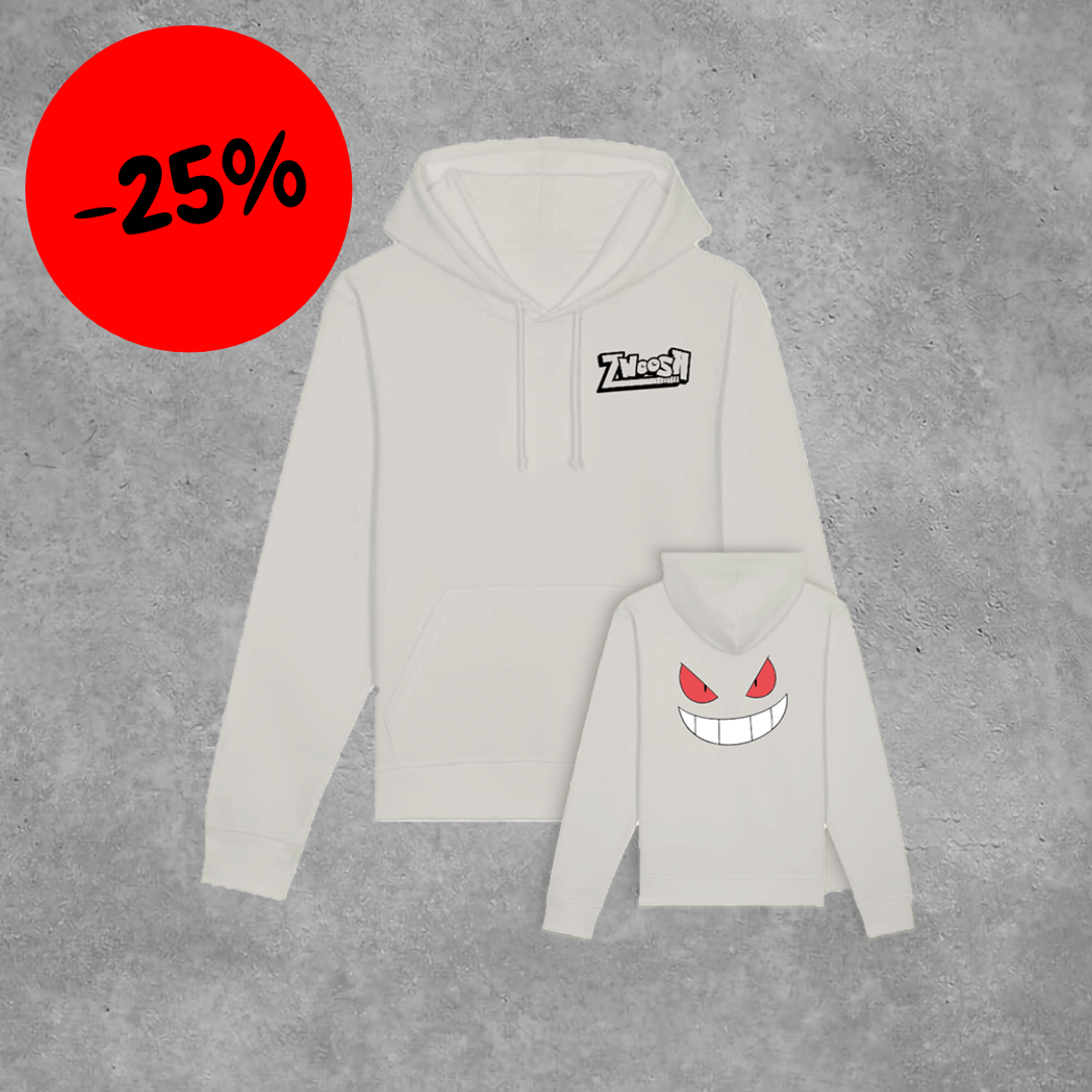 Zwoosh hoodie met big 'Gengar' smiley op de rug.